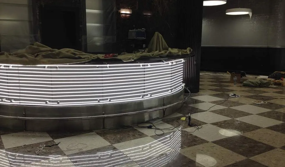 Блоки питания для светодиодных лент в подсветке барных стоек скрыты под ними же, а блоки, обеспечивающие работу подсветки лайтбоксов - в потолке над ними.